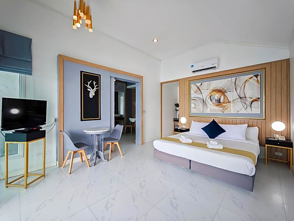 Located near the lake, this spacious standalone villa features a private balcony, TV and sofa seating area.